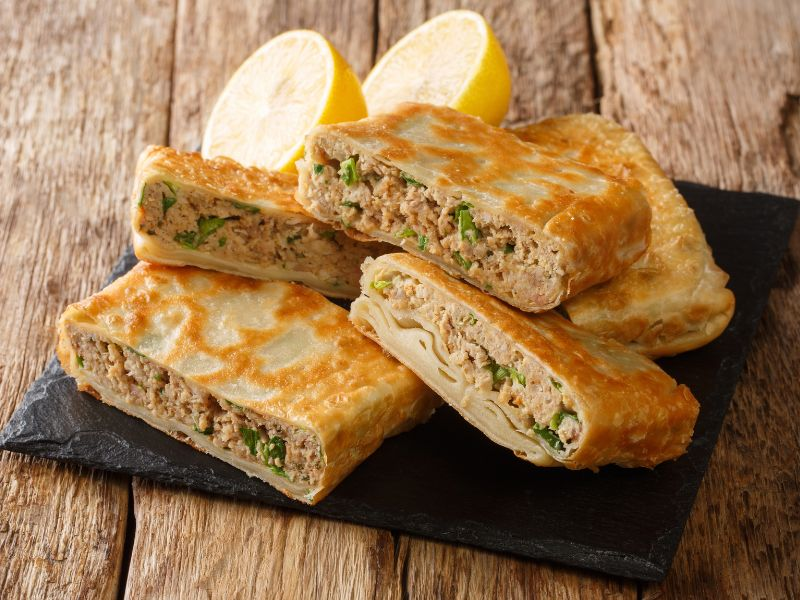 - Kunafa: Kue renyah dari adonan tipis (kataifi) dengan isian keju creamy atau krim, disiram sirup manis.